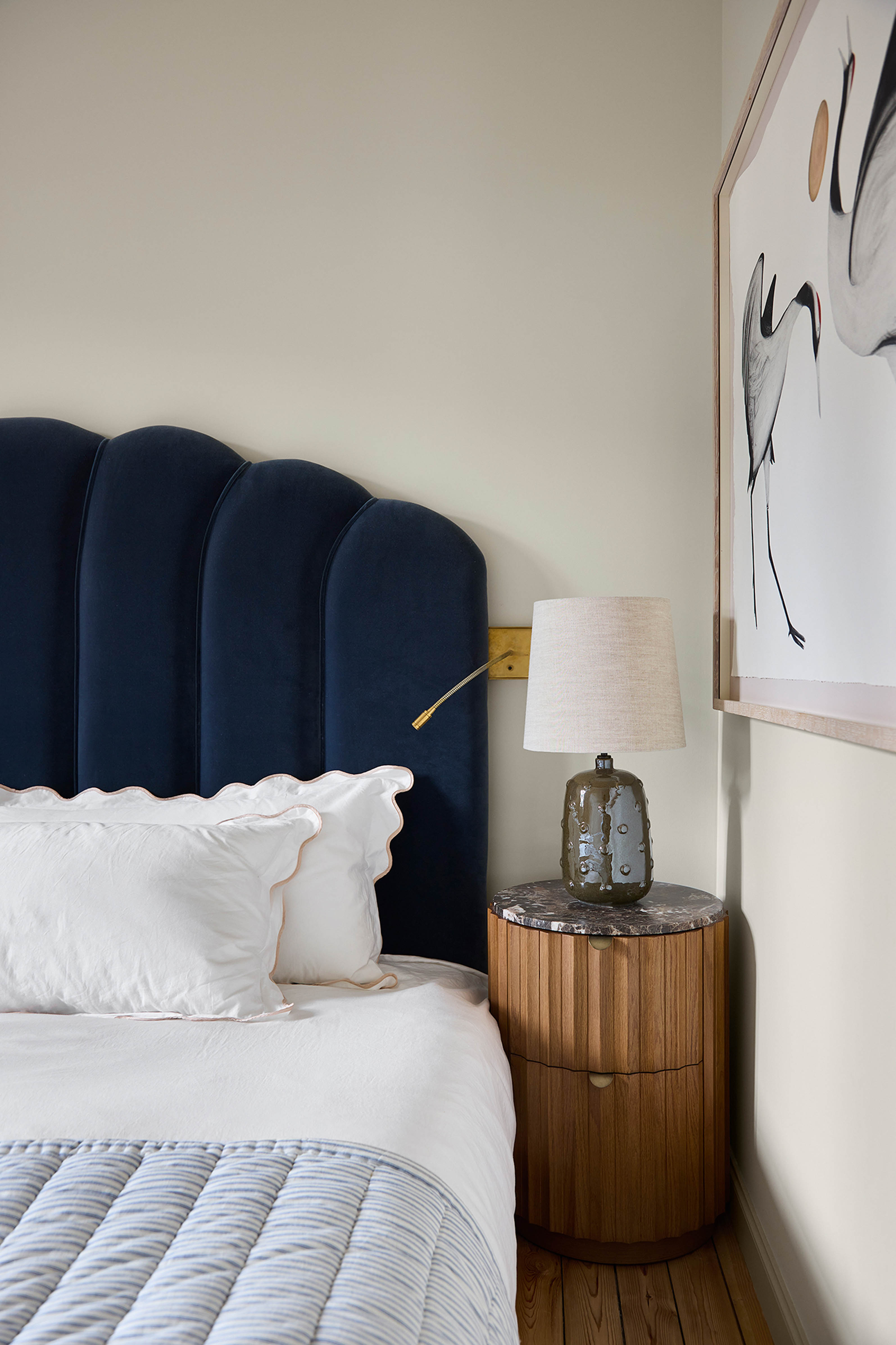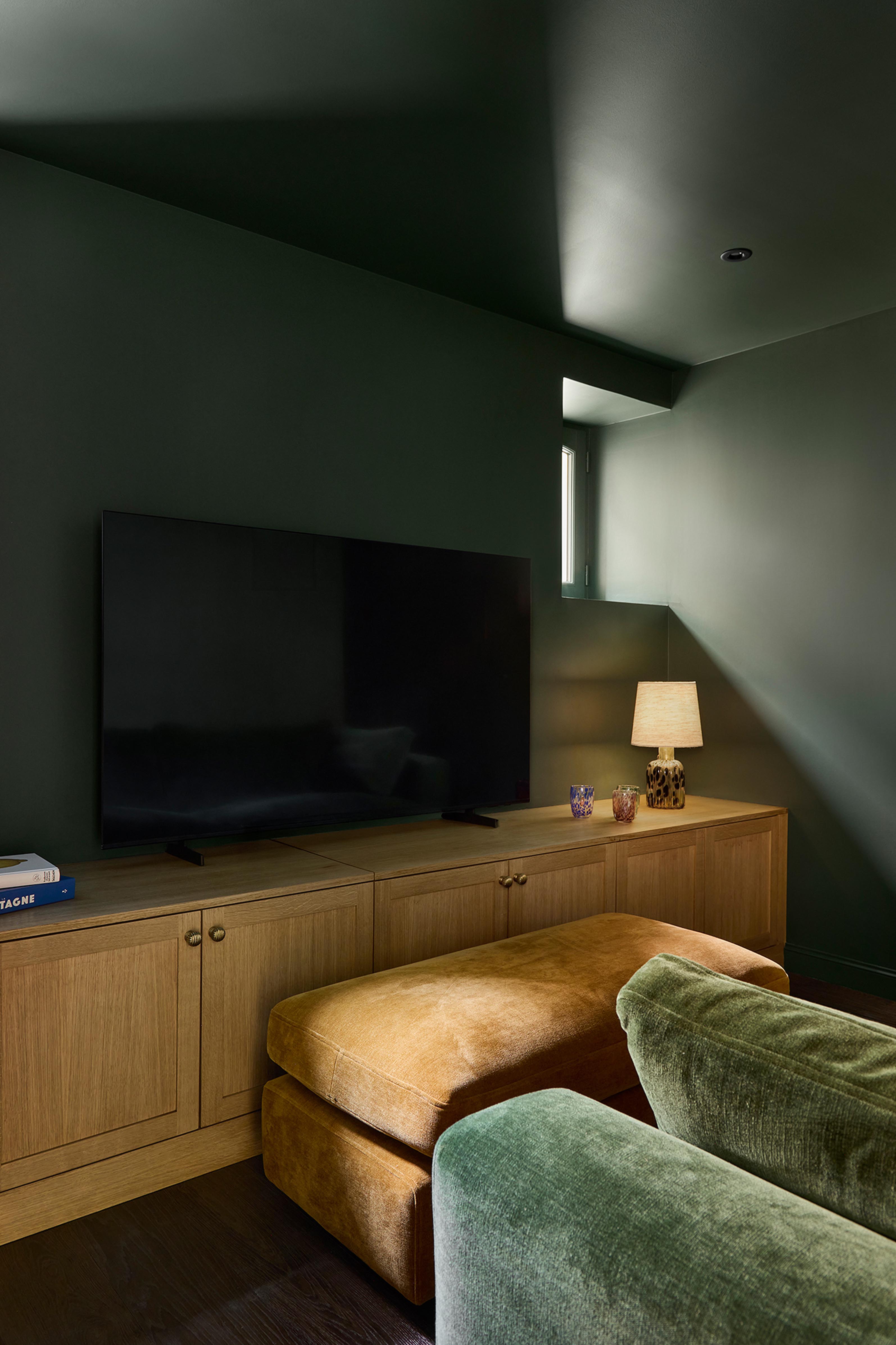 Les sols, les peintures et les papiers peints ont été choisis en fonction des volumes et de la luminosité de chaque pièce pour créer une harmonie générale.
