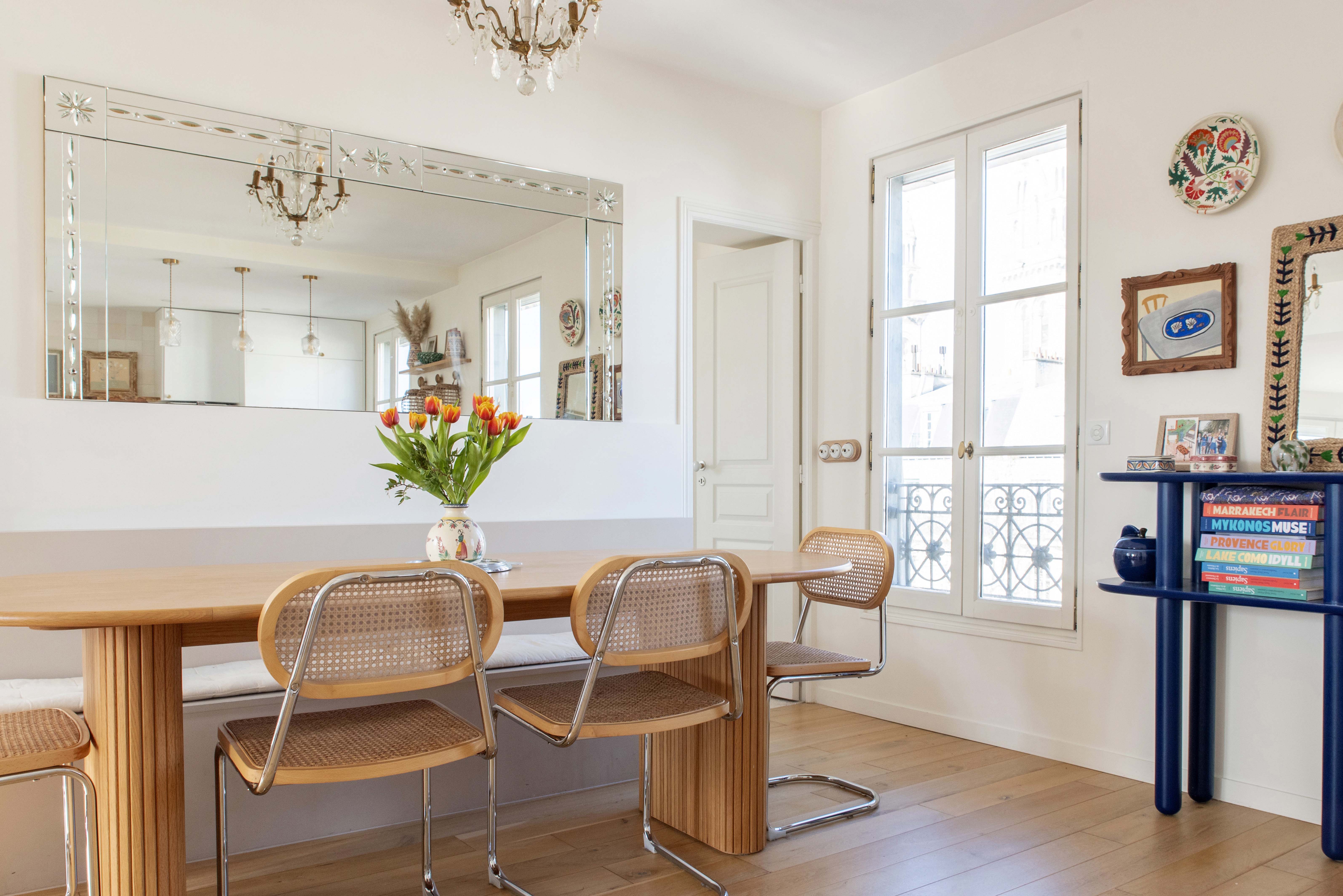 L’appartement a été entièrement repensé pour une famille de quatre personnes avec annexion d’une partie du couloir issue des parties communes.